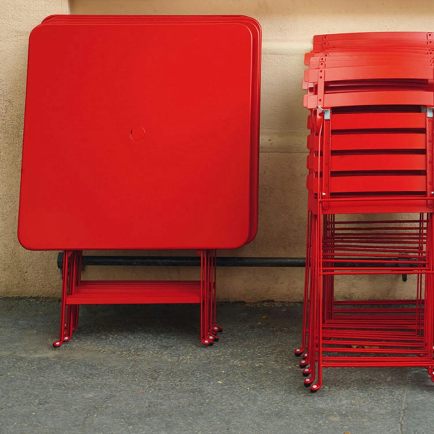 Bistro table from Fermob. A beautiful and simple folding table made of painted steel with a UV-resistant surface that will not fade in the sun. The table is ideal on the balcony or patio at the door, perfect to sit and take your morning coffee at.