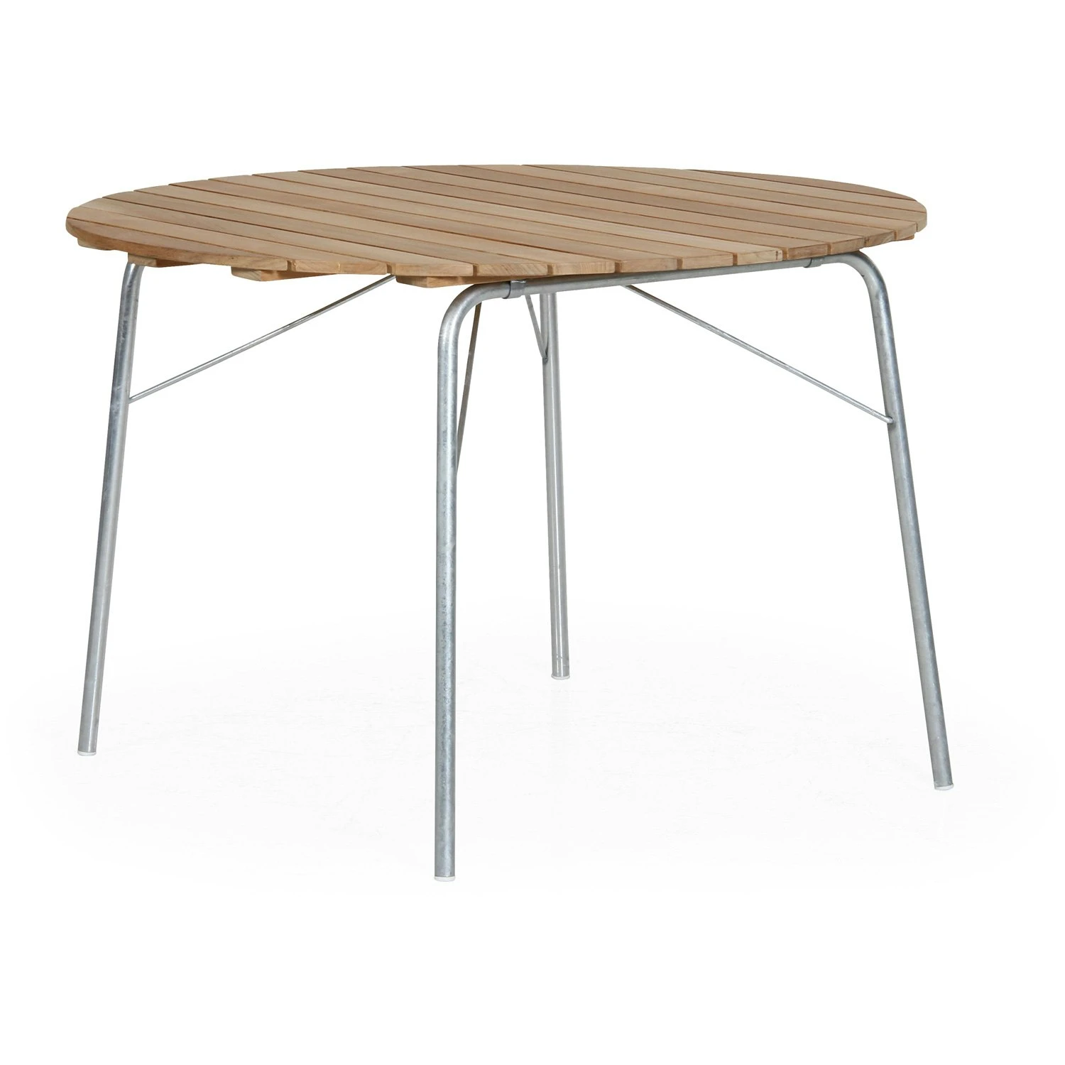 It has lovely teak wood ribs and a neat, simple frame in hot galvanized steel.