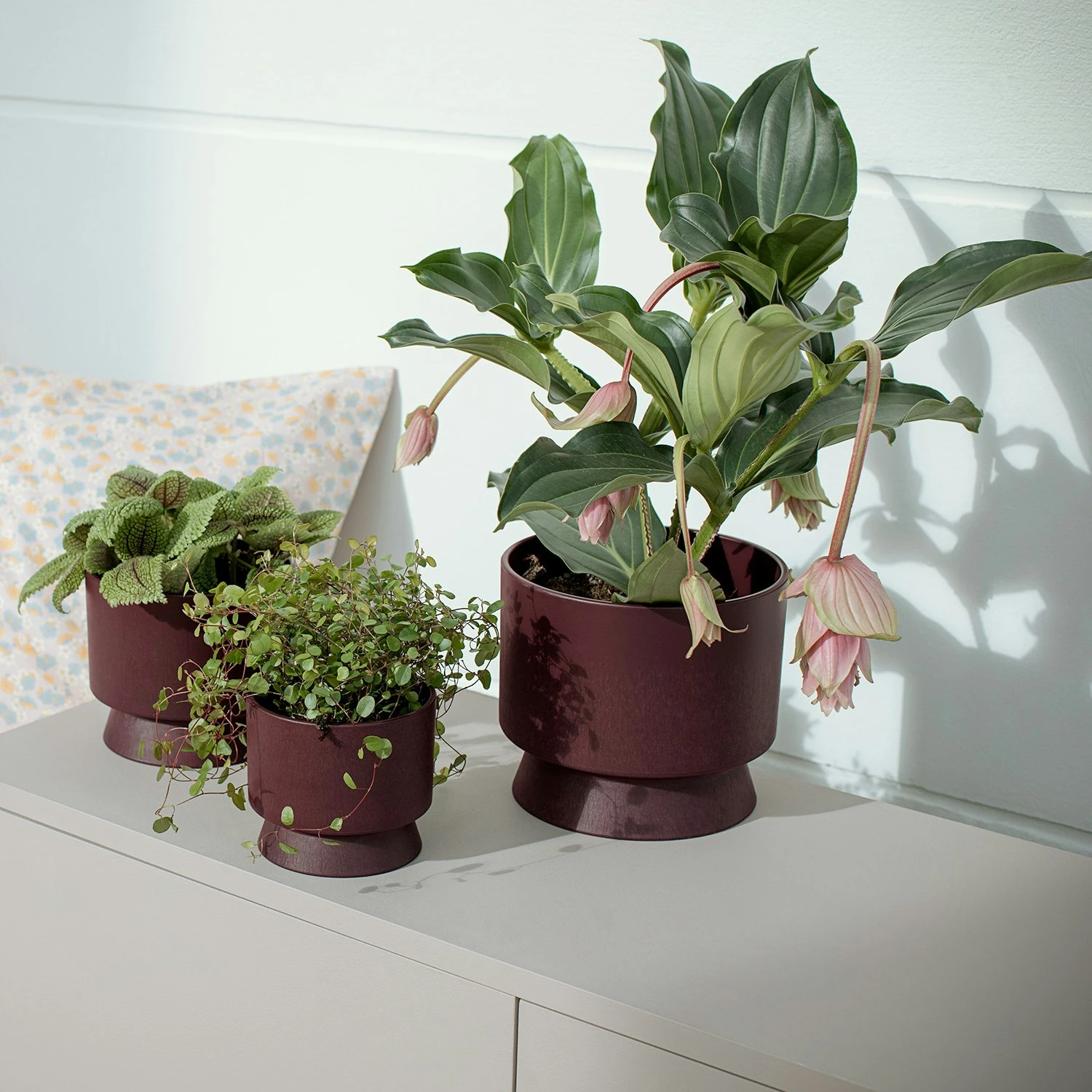 The pot by Rosendahl has a sustainable design in recycled, frostproof plastic perfect for both indoor and outdoor use. It has a rustic appearance with an uneven surface and a dark red colour. It has a light weight to easily move around at home.