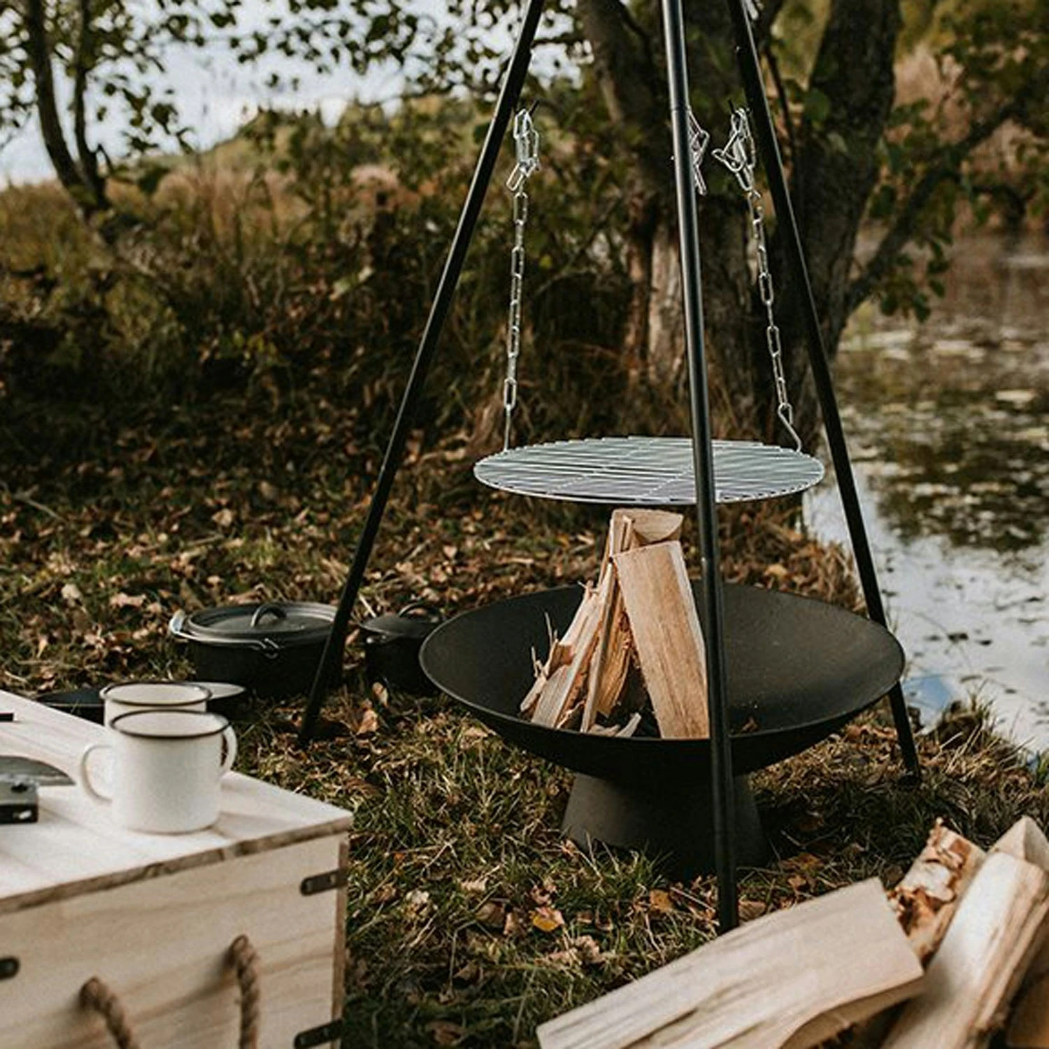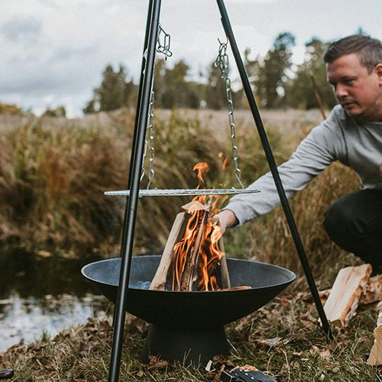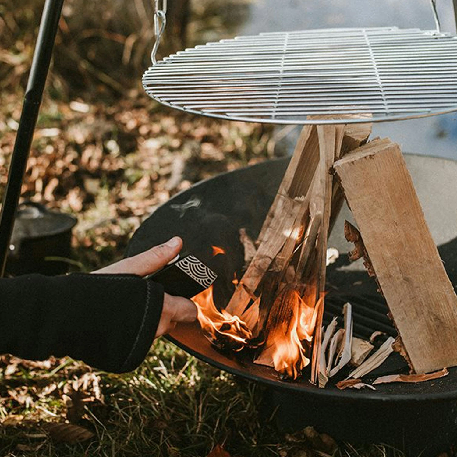 The fireplace by Satake is made of cast iron with a stable rack for safe usage. It has an easy-to-use design with a grid in the middle perfect for a barbecue.