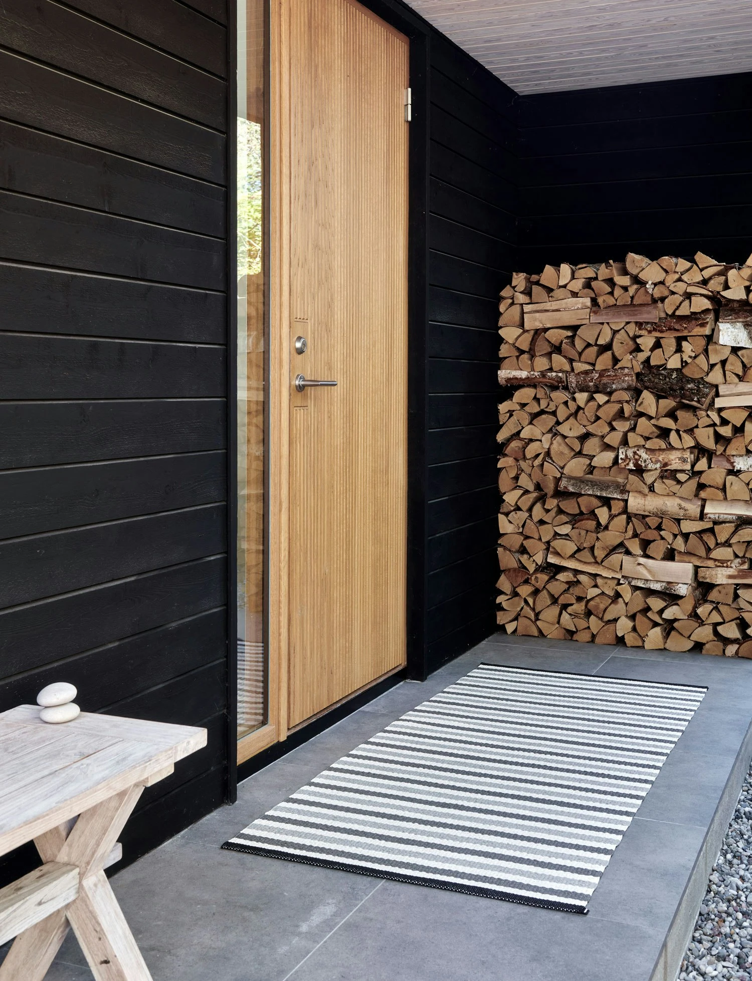 The rug by Pappelina has a classic design in PVC with different, grey colours and a striped pattern. It has hand sewn, hemmed edges with a sewn-in logo on one side. The rug has a traditional manufacturing process with loom. A perfect detail for every room in your home.